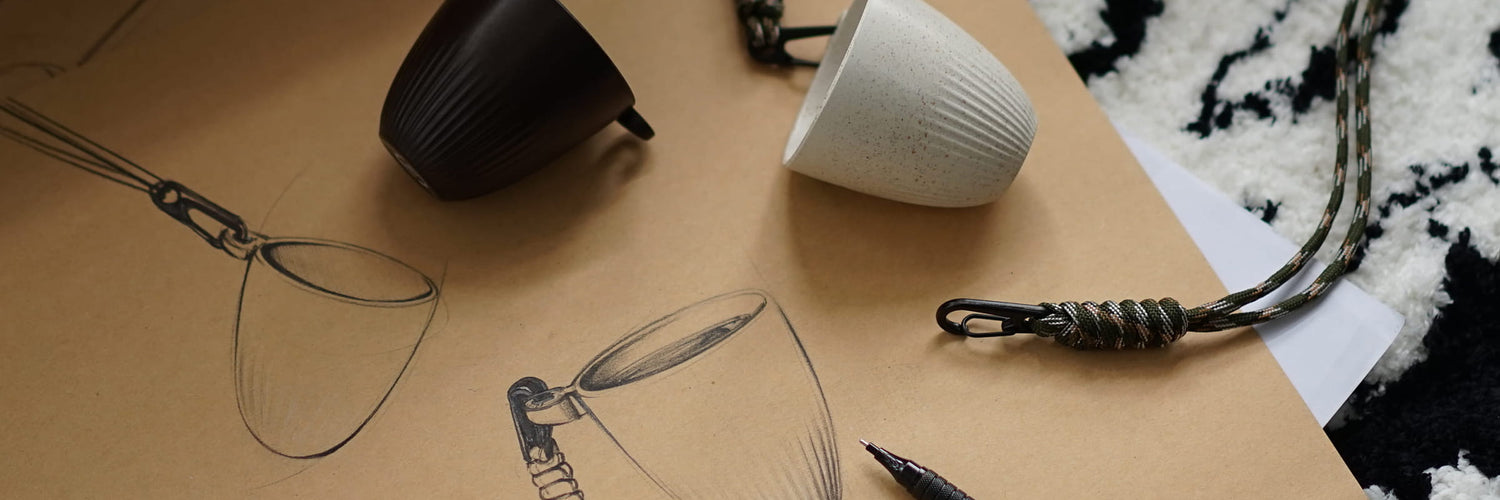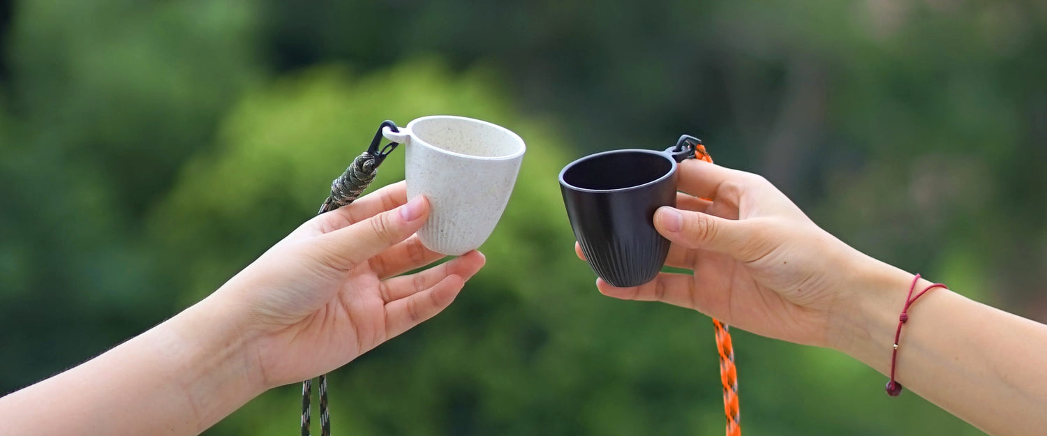 環境に優しいコーヒーグラウンド キャンプ用カップ ストラップ付き - 3オンス